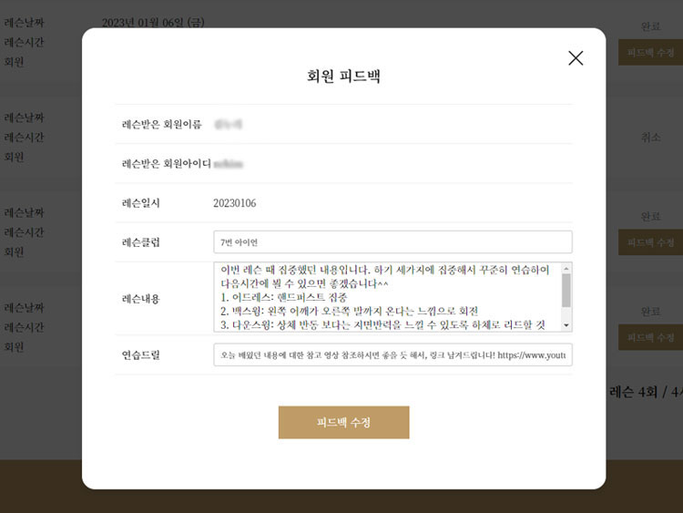 레슨 후 프로님이 회원별 맞춤 피드백을 제공해드립니다.