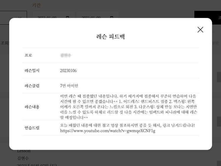레슨 후 프로님이 회원별 맞춤 피드백을 제공해드립니다.